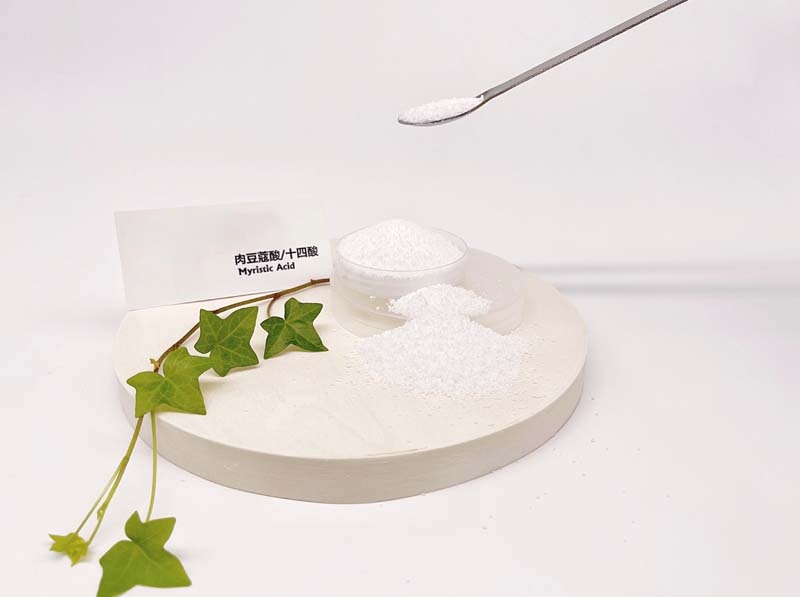 十四酸(Myristic Acid)是一种饱和直链脂肪酸,分子式C₁₄H₂₈O₂,常来源于椰子油、棕榈仁油等天然油脂,外观为白色结晶固体。广泛用于个人护理品、乳化剂、表面活性剂、润滑剂、医药辅料等领域,具备良好的柔润性和乳化性能,是日化、医药和精细化工中常用的功能原料。